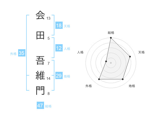 会田 吾維門さんを姓名の画数から五運を鑑定