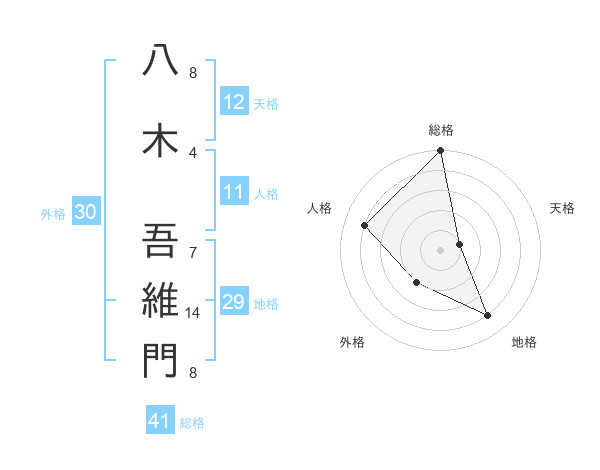 八木 吾維門さんの総格は41画の5点!