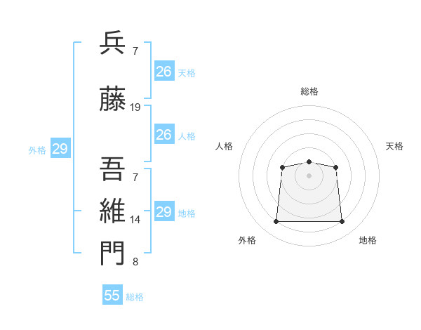 兵藤 吾維門さんを姓名の画数から五運を鑑定
