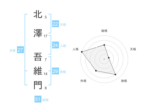 北澤 吾維門さんを姓名の画数から五運を鑑定