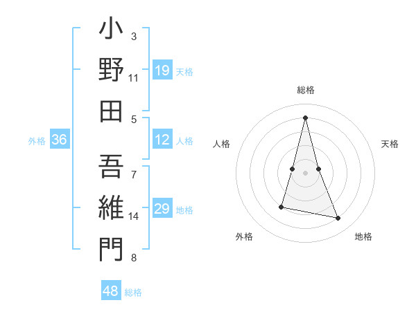 小野田 吾維門さんを姓名の画数から五運を鑑定