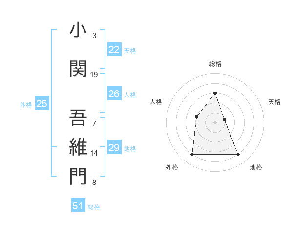 小関 吾維門さんを姓名の画数から五運を鑑定