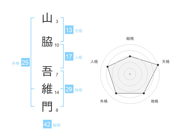 山脇 吾維門さんを姓名の画数から五運を鑑定