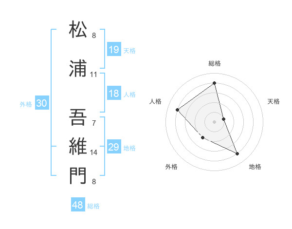 松浦 吾維門さんを姓名の画数から五運を鑑定