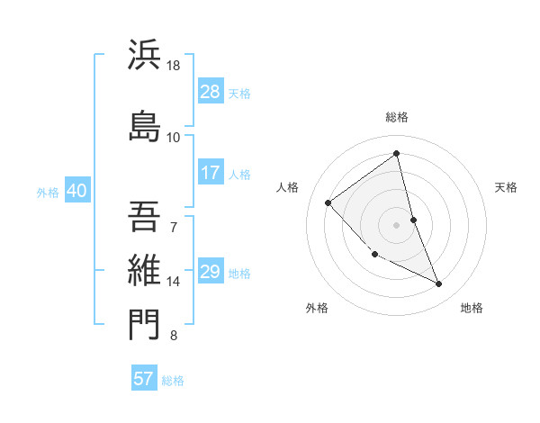 浜島 吾維門さんの総格は57画の4点!