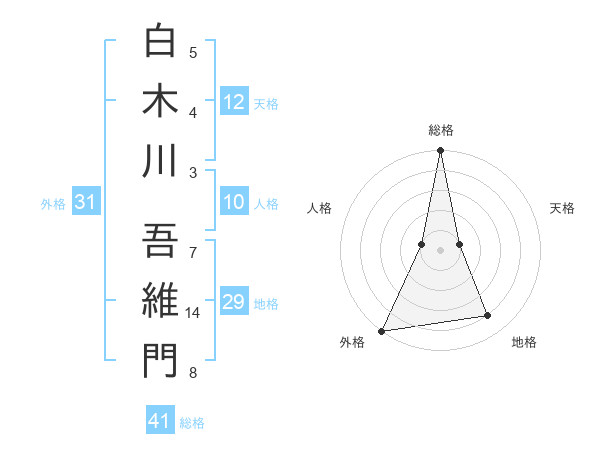 白木川 吾維門さんを姓名の画数から五運を鑑定