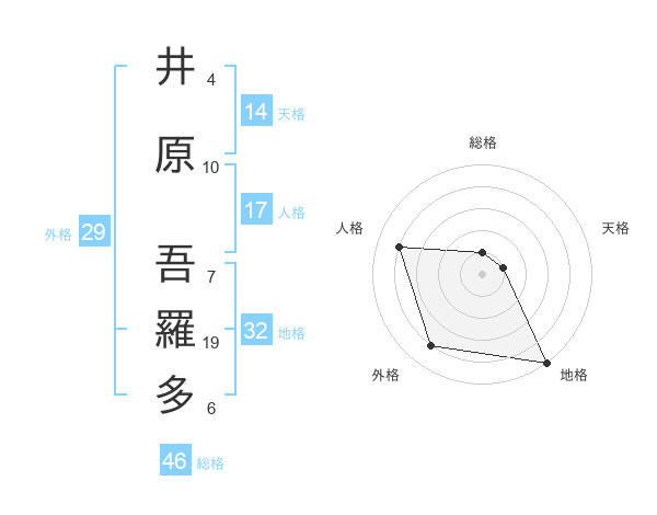 井原 吾羅多さんを姓名の画数から五運を鑑定