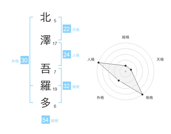 北澤 吾羅多さんを姓名の画数から五運を鑑定