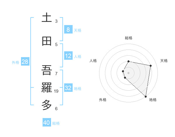 土田 吾羅多さんを姓名の画数から五運を鑑定