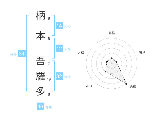 柄本 吾羅多さんの総格は46画の1点!