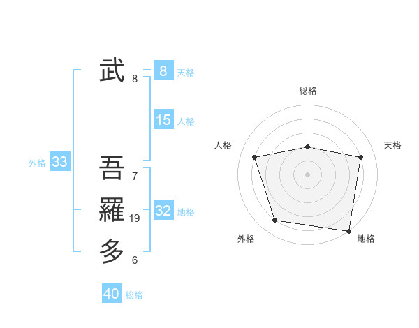 武 吾羅多さんを姓名の画数から五運を鑑定