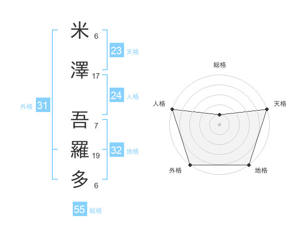 米澤 吾羅多さんの総格は55画の1点!