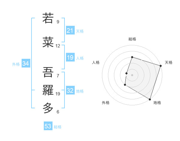 若菜 吾羅多さんを姓名の画数から五運を鑑定