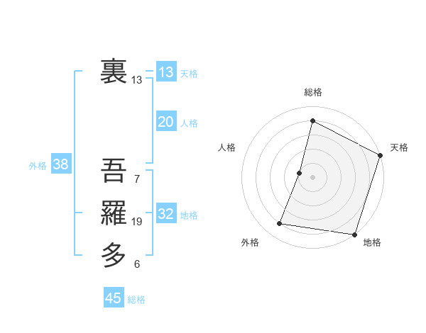 裏 吾羅多さんを姓名の画数から五運を鑑定