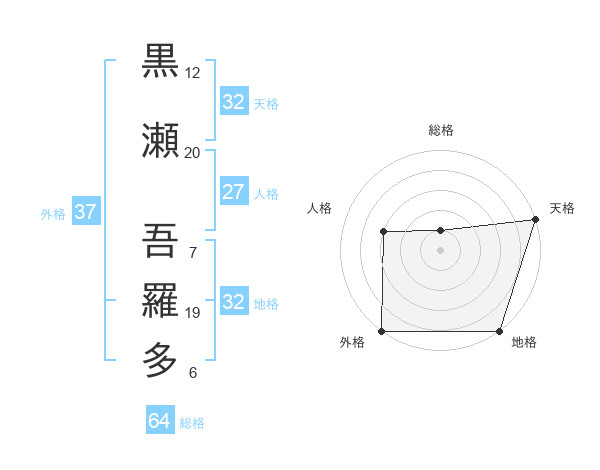 黒瀬 吾羅多さんを姓名の画数から五運を鑑定