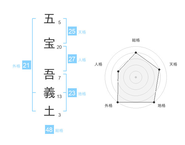 五宝 吾義土さんの外格は21画の5点!