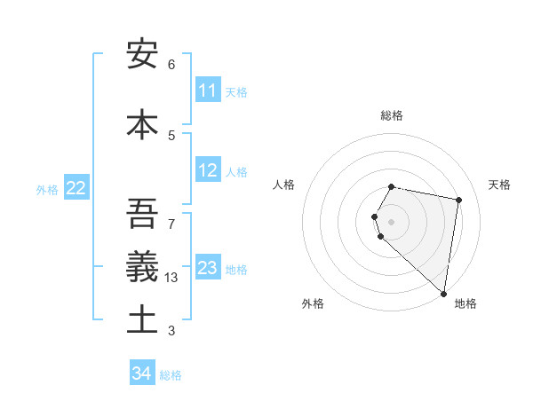 安本 吾義土さんの総格は34画の2点!