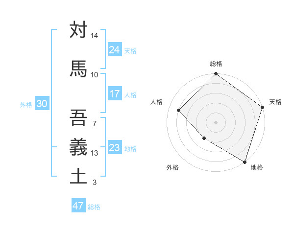 対馬 吾義土さんの総格は47画の5点!