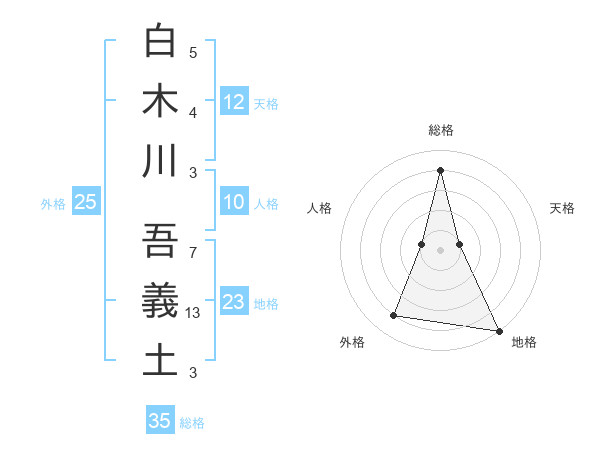 白木川 吾義土さんの総格は35画の4点!