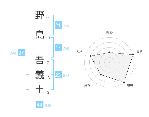 野島 吾義土さんを姓名の画数から五運を鑑定
