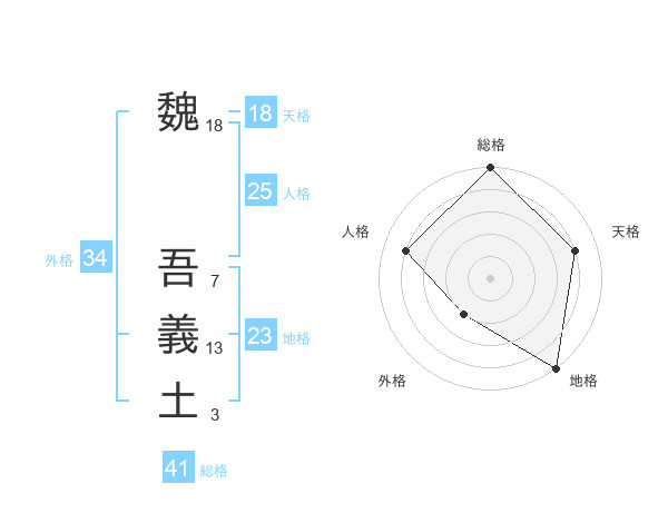 魏 吾義土さんの天格は18画の4点!