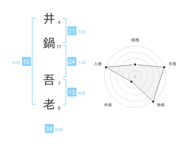 井鍋 吾老さんの天格は21画の5点!