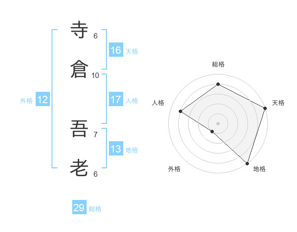 寺倉 吾老さんの総格は29画の4点!