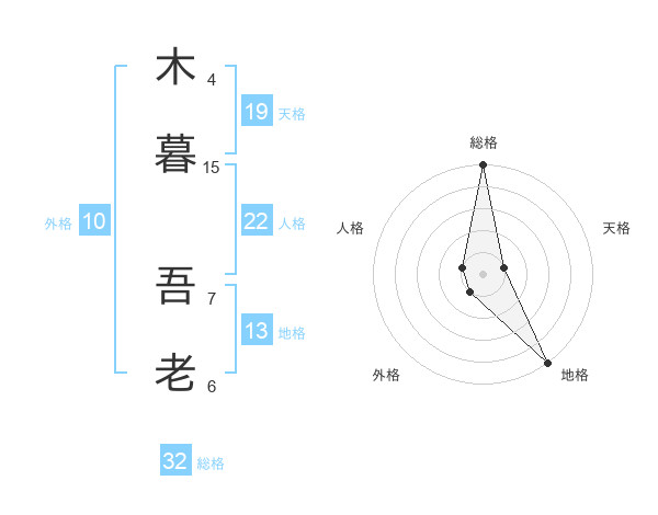 木暮 吾老さんの総格は32画の5点!