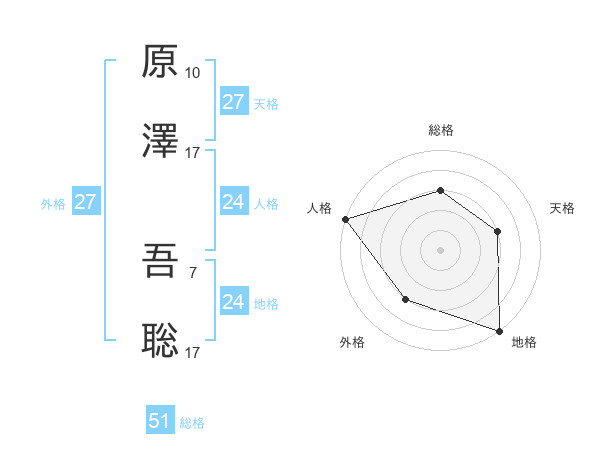 原澤 吾聡さんの総格は51画の3点!