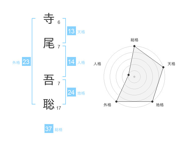 寺尾 吾聡さんの天格は13画の5点!