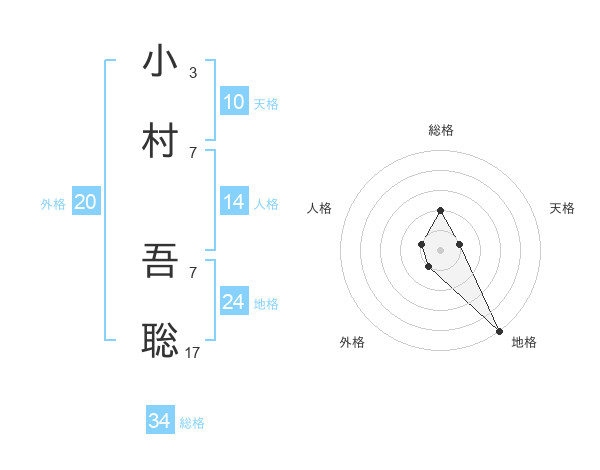 小村 吾聡さんの総格は34画の2点!