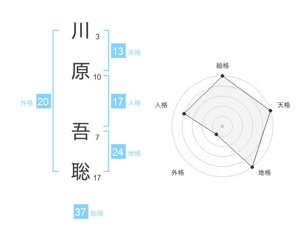 川原 吾聡さんの天格は13画の5点!