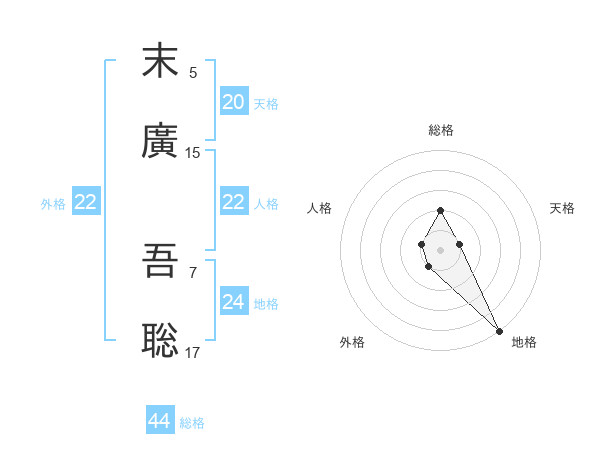 末廣 吾聡さんを姓名の画数から五運を鑑定