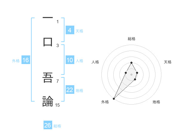 一口 吾論さんの総格は26画の2点!