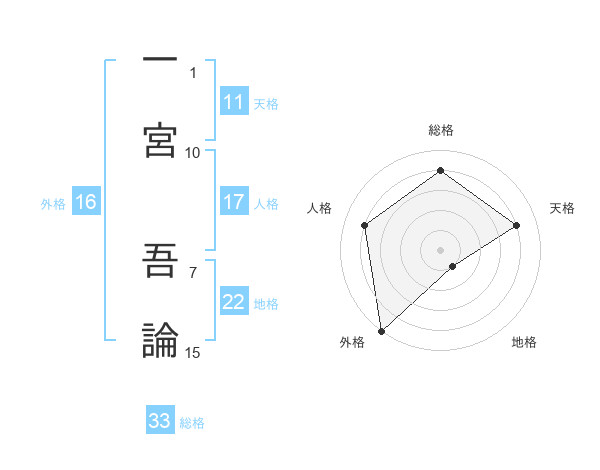 一宮 吾論さんを姓名の画数から五運を鑑定