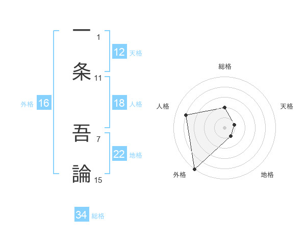 一条 吾論さんの外格は16画の5点!