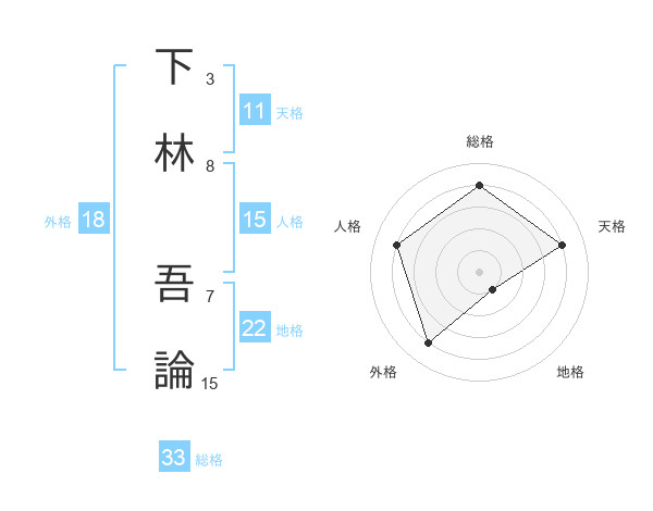 下林 吾論さんの総格は33画の4点!