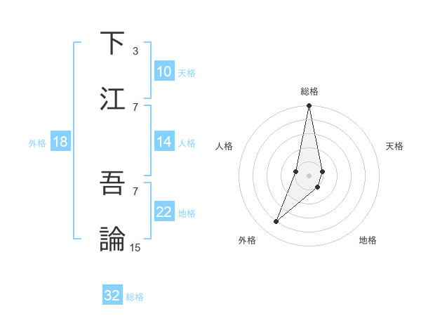 下江 吾論さんの総格は32画の5点!