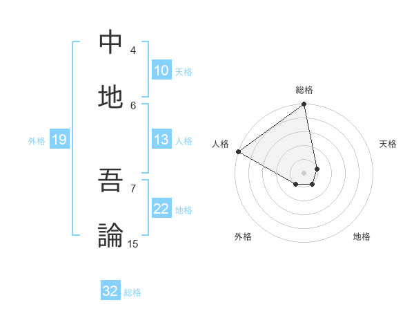 中地 吾論さんを姓名の画数から五運を鑑定