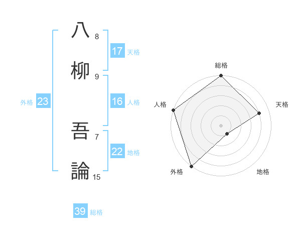 八柳 吾論さんを姓名の画数から五運を鑑定