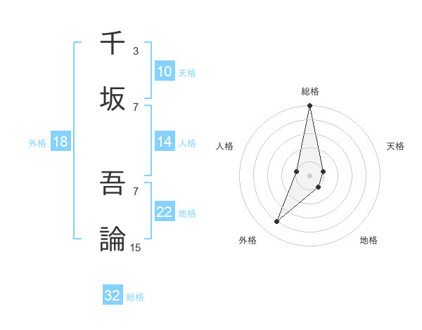 千坂 吾論さんを姓名の画数から五運を鑑定