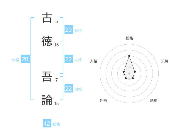 古徳 吾論さんを姓名の画数から五運を鑑定