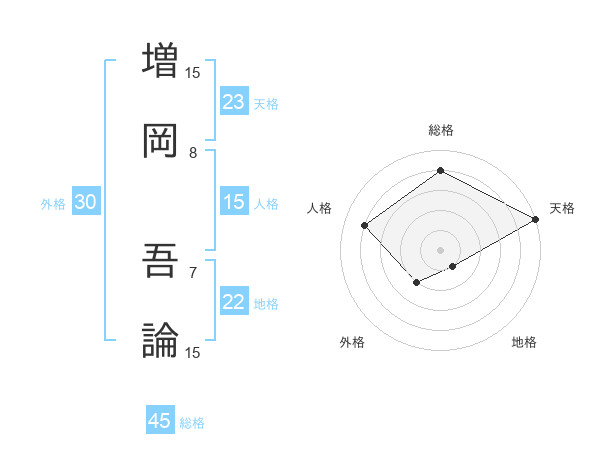 増岡 吾論さんの総格は45画の4点!