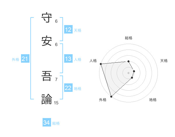 守安 吾論さんの総格は34画の2点!