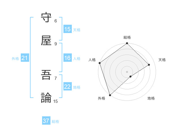 守屋 吾論さんを姓名の画数から五運を鑑定