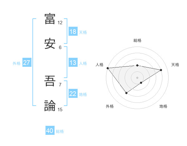 家系が持つ宿命的な運勢を表します。祖先から受け継いだ苗字ですので自分の力が及びません。家柄を象徴します。