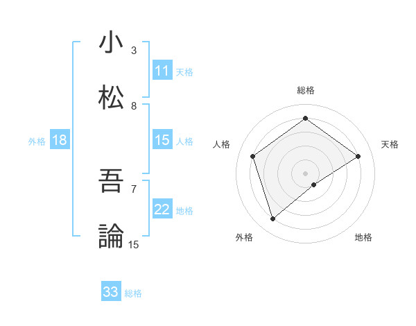 小松 吾論さんの総格は33画の4点!