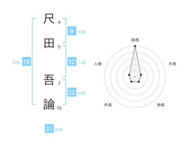 尺田 吾論さんの総格は31画の5点!