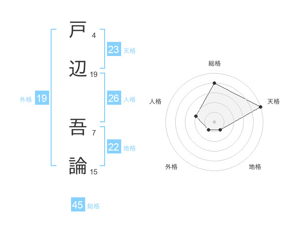 戸辺 吾論さんの総格は45画の4点!
