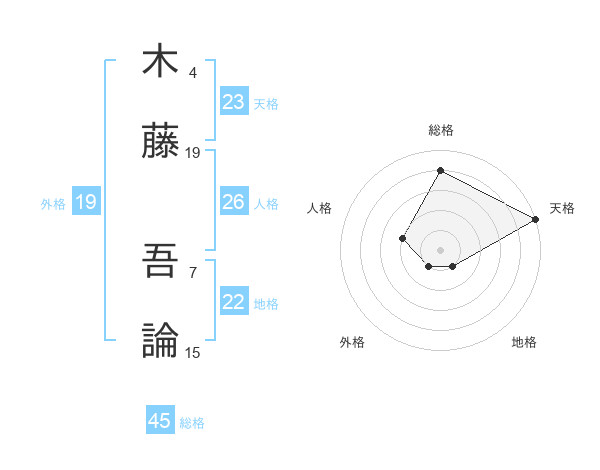 木藤 吾論さんを姓名の画数から五運を鑑定